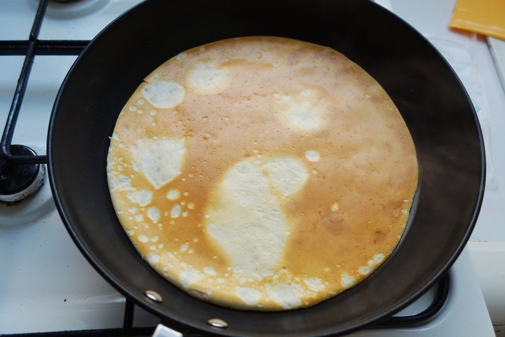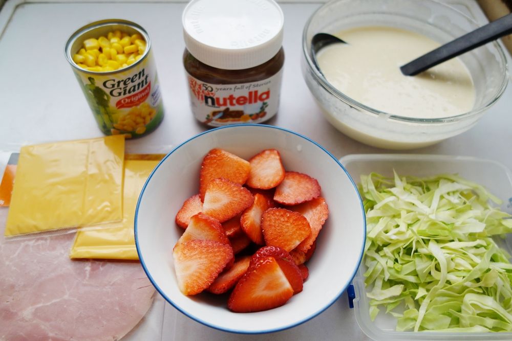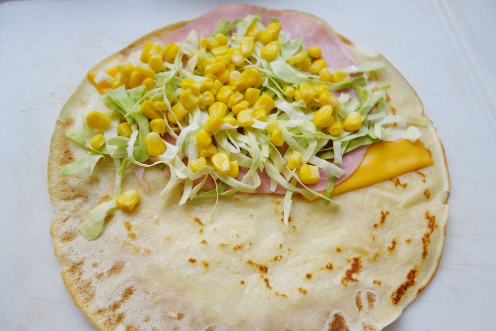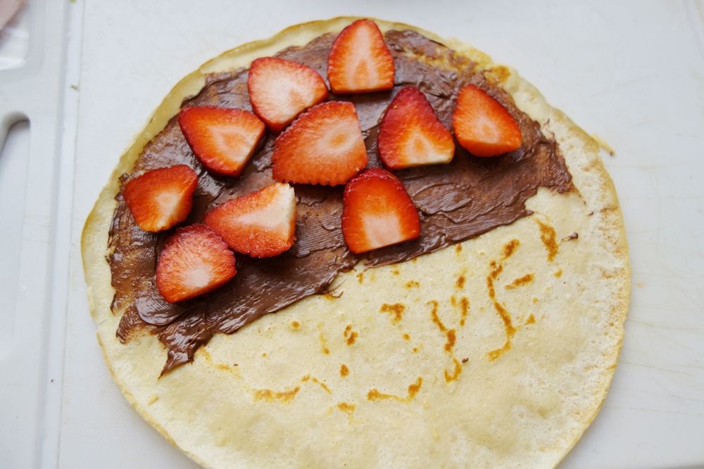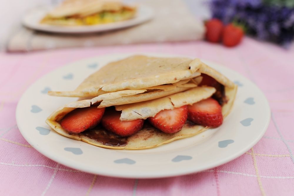 可麗餅雖然是夜市小吃,但我常拿來當早餐。內餡材料可以自由搭配,甜、鹹味我都喜歡,今天做火腿起士和草莓巧克力雙重口味。