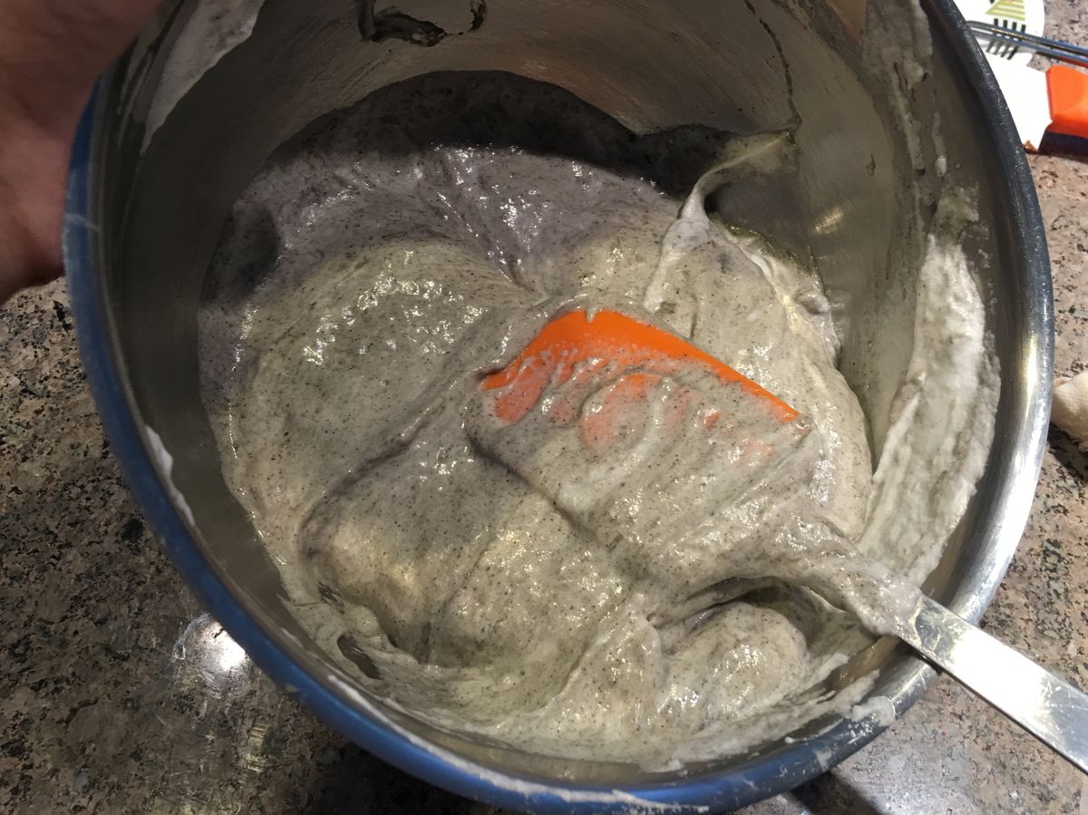 攪拌均勻成為無粉粒的麵糊之後, 打開烤箱預熱至160度c.