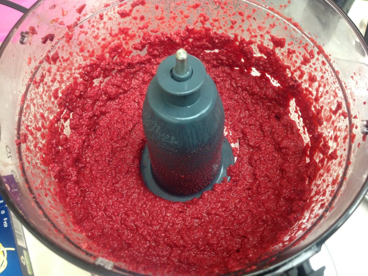 加入一些煮甜菜根的水,讓整體成糊狀,像義大利麵醬的濃稠度即可