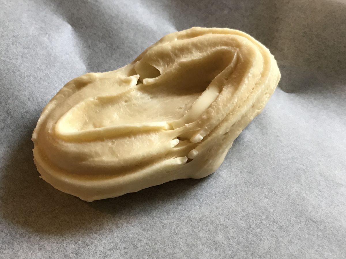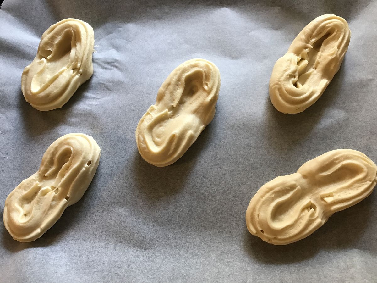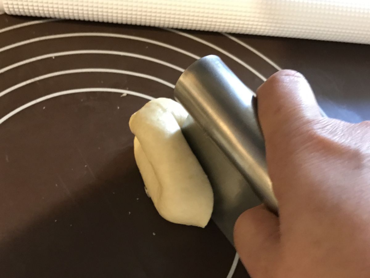 展開來攤平就形成橢圓形麵團
