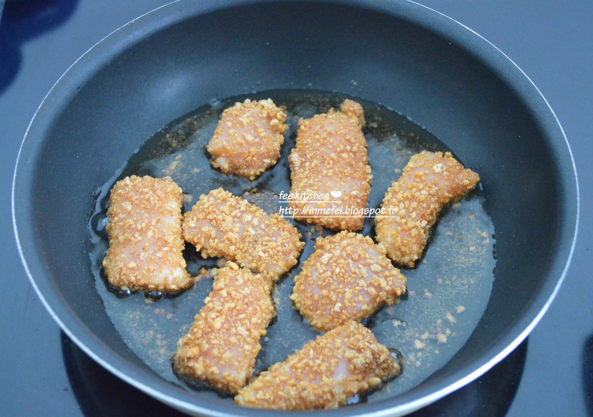 今日創新健康料理, 雞塊只要簡單調味,裹上麵包粉煎成金黃色澤 。成果:健康、美味,口感:香濃、酥脆又好吃。