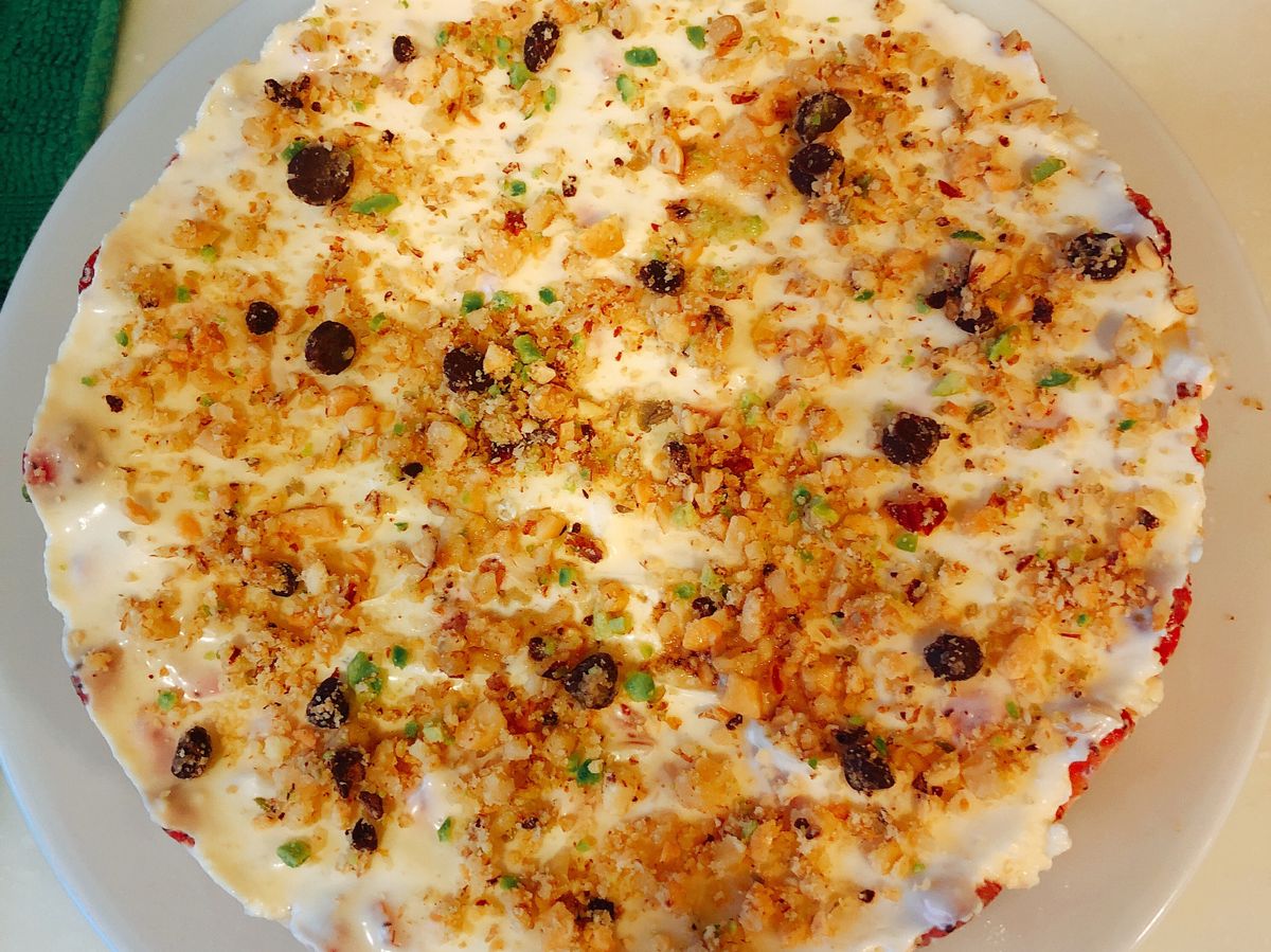 我自己不愛鮮奶油 所以大量撒堅果跟帶苦的巧克力豆 超搭的 尤其是堅果!