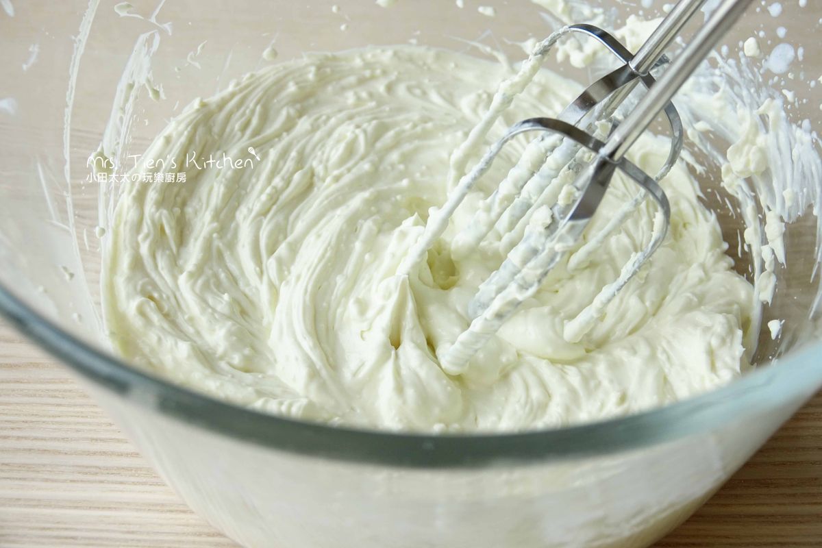 將奶油乳酪、優格、檸檬汁用攪拌器攪拌均勻備用