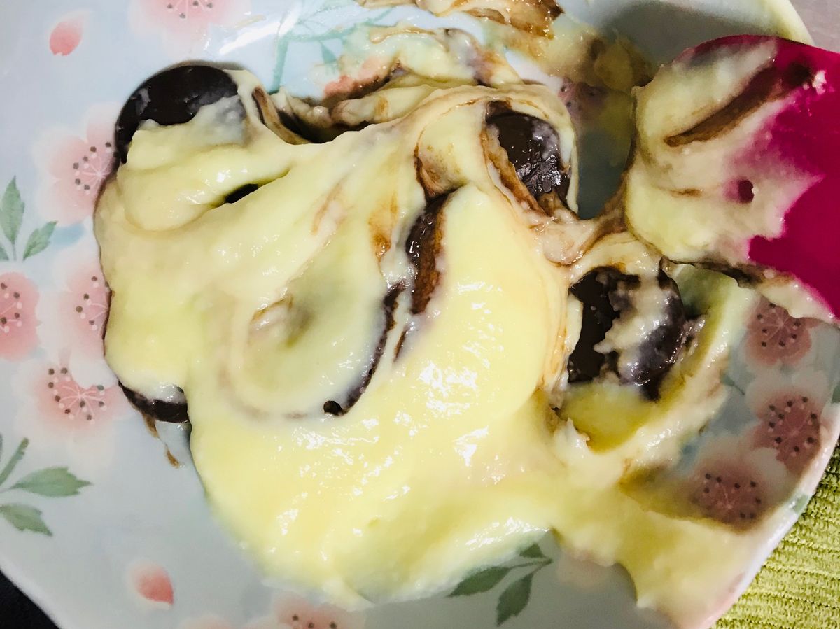 卡士達-巧克力 趁熱取一半的原味卡士達拌入鈕扣巧克力就完成✅