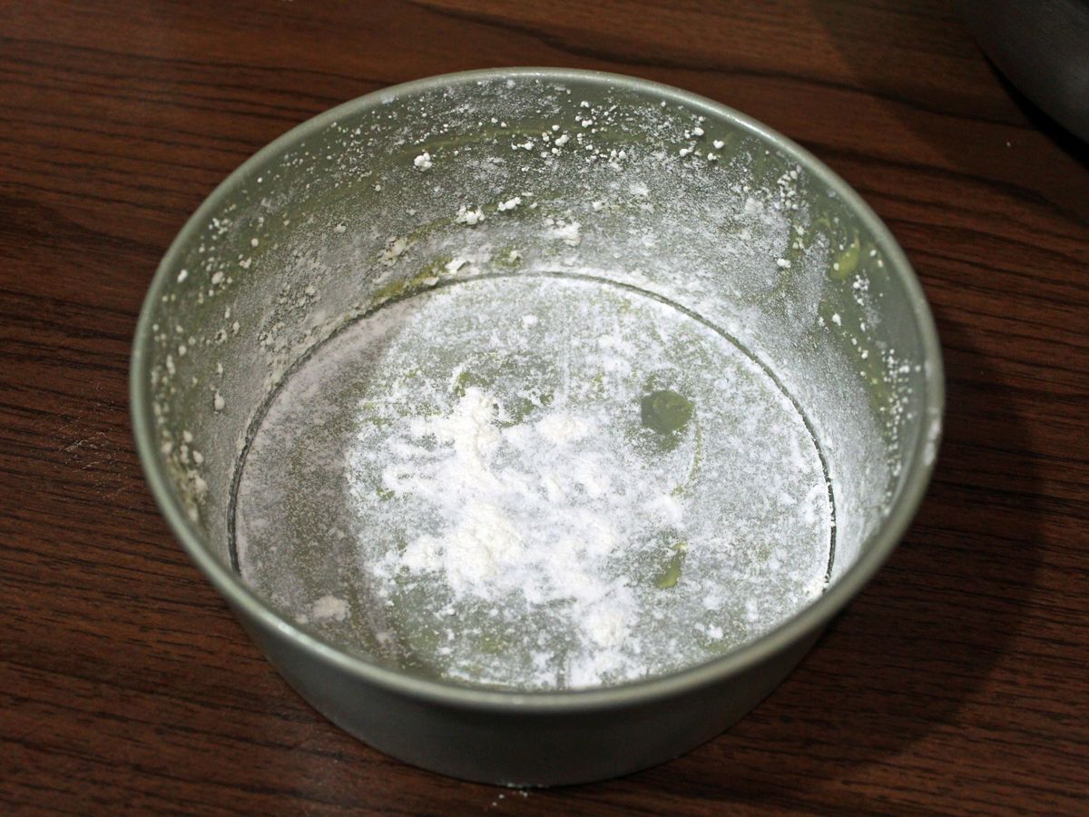 六吋蛋糕膜, 仔細塗抹一層奶油, 再灑上麵粉 (材料外, 以利脫膜)