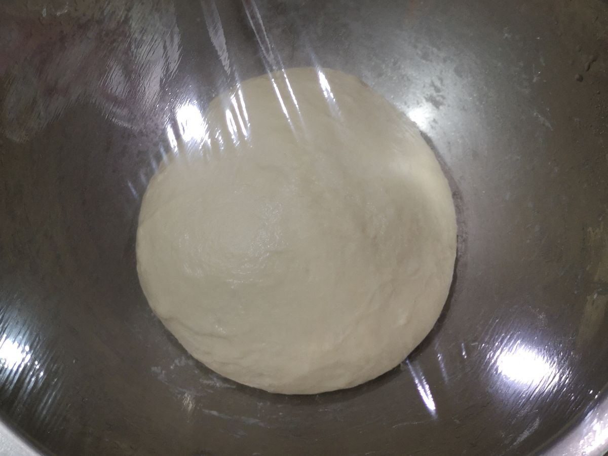 找個大一點的容器,將麵粉過塞,與糖/鹽/牛奶混合均勻,再加入酵母,最後奶油與橄欖油。 努力的揉麵團,麵團光滑,手也乾淨的時侯差不多就可以了,整理成圓形,等待第一次發酵(1小時)。 備註:網路說要揉到有薄膜,但我第一次製作,揉很久都沒有那麼漂亮的膜,還是讓麵團放著發酵了。