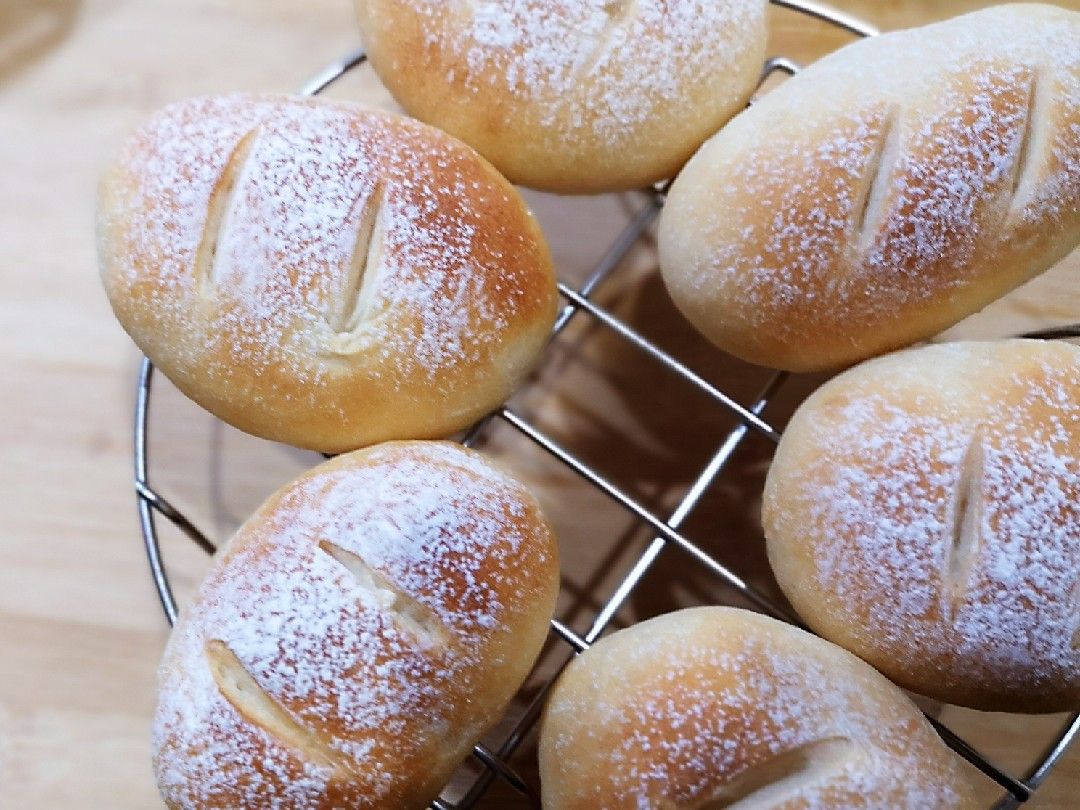 出爐以後,要用網子放涼,不會很乾,簡單的麵香,越嚼越香。 我下次應該就不會撒最後的裝飾麵粉,摸起來粉粉的。