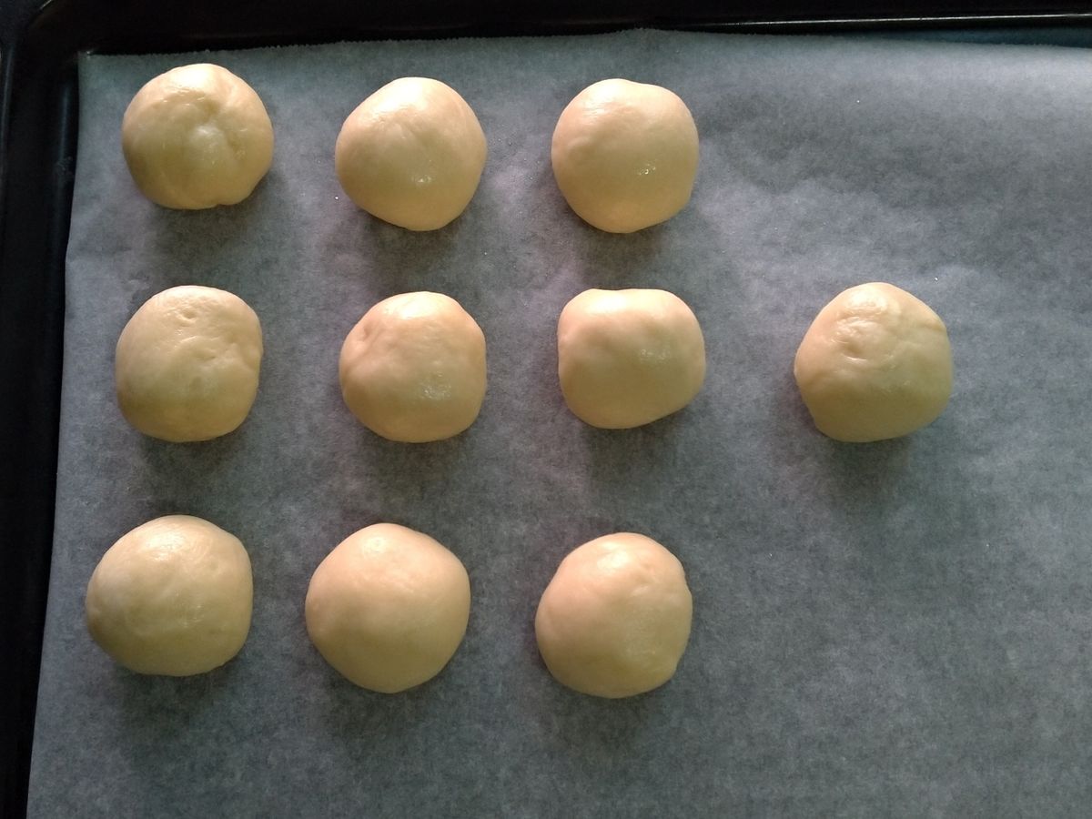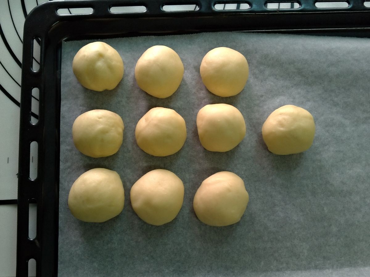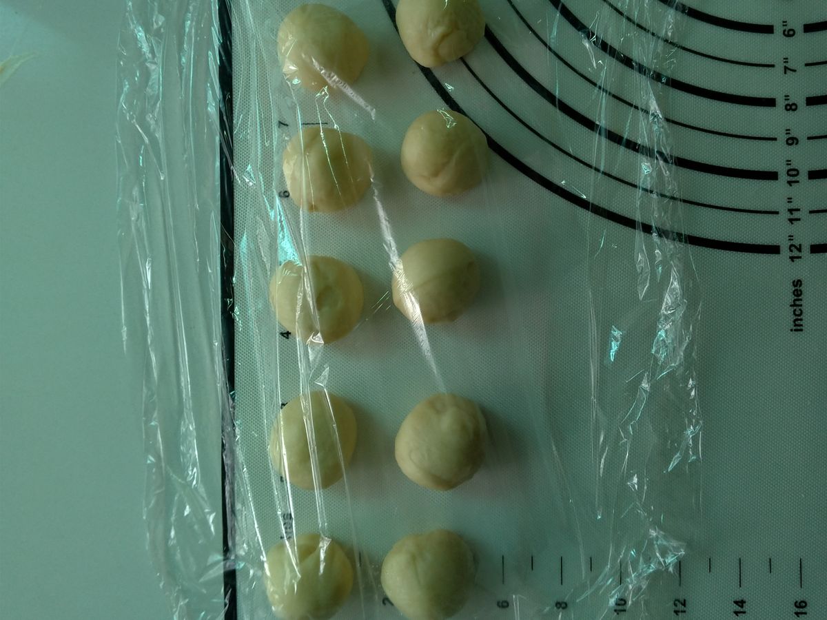 取14g麵糰*10顆滾圓,蓋保鮮膜鬆弛15分鐘