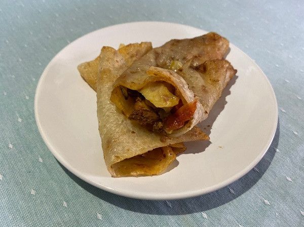 輕輕 4 食譜 8 粉絲 追蹤 墨西哥捲餅 描述 吃膩了米飯or麵條 就讓我來教你墨西哥捲餅 製作過程簡單又快速 內餡可以按照自己口味自由組合 營養充分又不容易失敗的料理 8 說讚 讚收藏分享分享FacebookLINE複製連結列印 份量 1 人份 時間 30 分鐘 食材 番茄 1 高麗菜絲 1 紅蘿蔔 1 蛋餅皮 1 廣達香辣肉醬 1 永偉玉米粒 1 黑胡椒 1 步驟 首先備齊番茄、高麗菜絲、紅蘿蔔、蛋餅皮一張、黑胡椒、廣達香肉醬、永偉玉米粒 將紅蘿蔔刨成條狀 杏鮑菇、番茄切丁 並放入鍋中再放入高麗菜絲、廣達香肉辣醬 接著將鍋內的食材拌炒至香味四溢 最後加入永偉玉米粒 (看個人口味) 並用黑胡椒提味 蛋餅放入鍋中乾煎兩面金黃微焦 並將所有配料加進捲餅中即完成 最後只要捲起來再切一半就大功告成啦 7,262 瀏覽 2020/01/02 發表