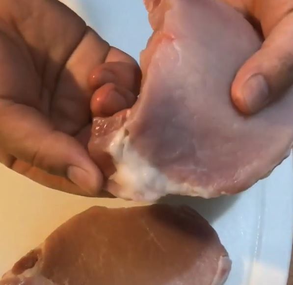里肌肉清洗過,以紙巾將水吸乾