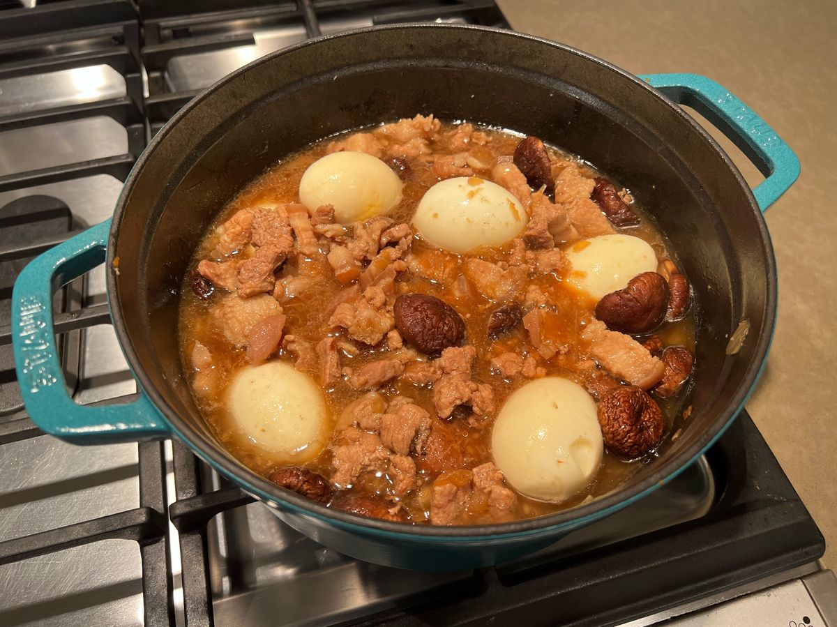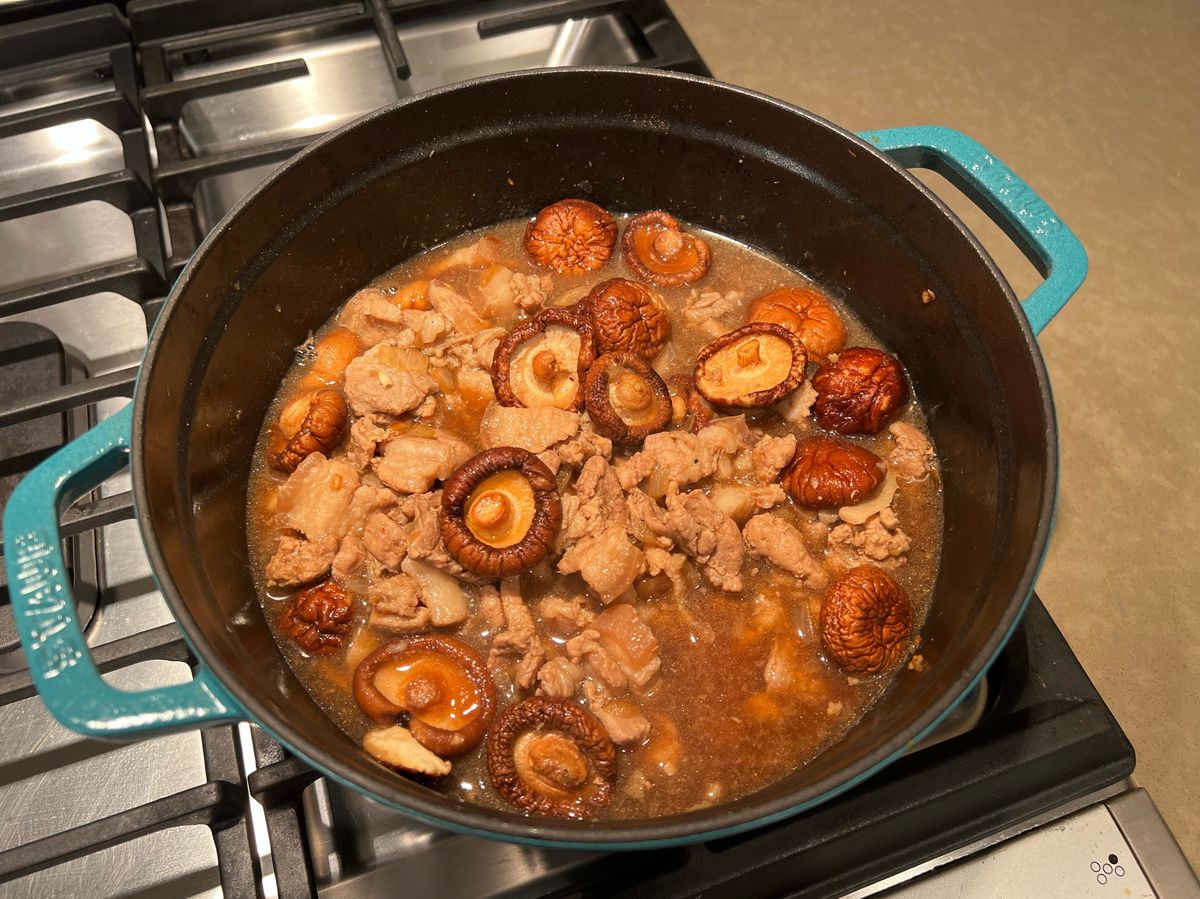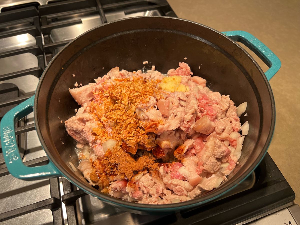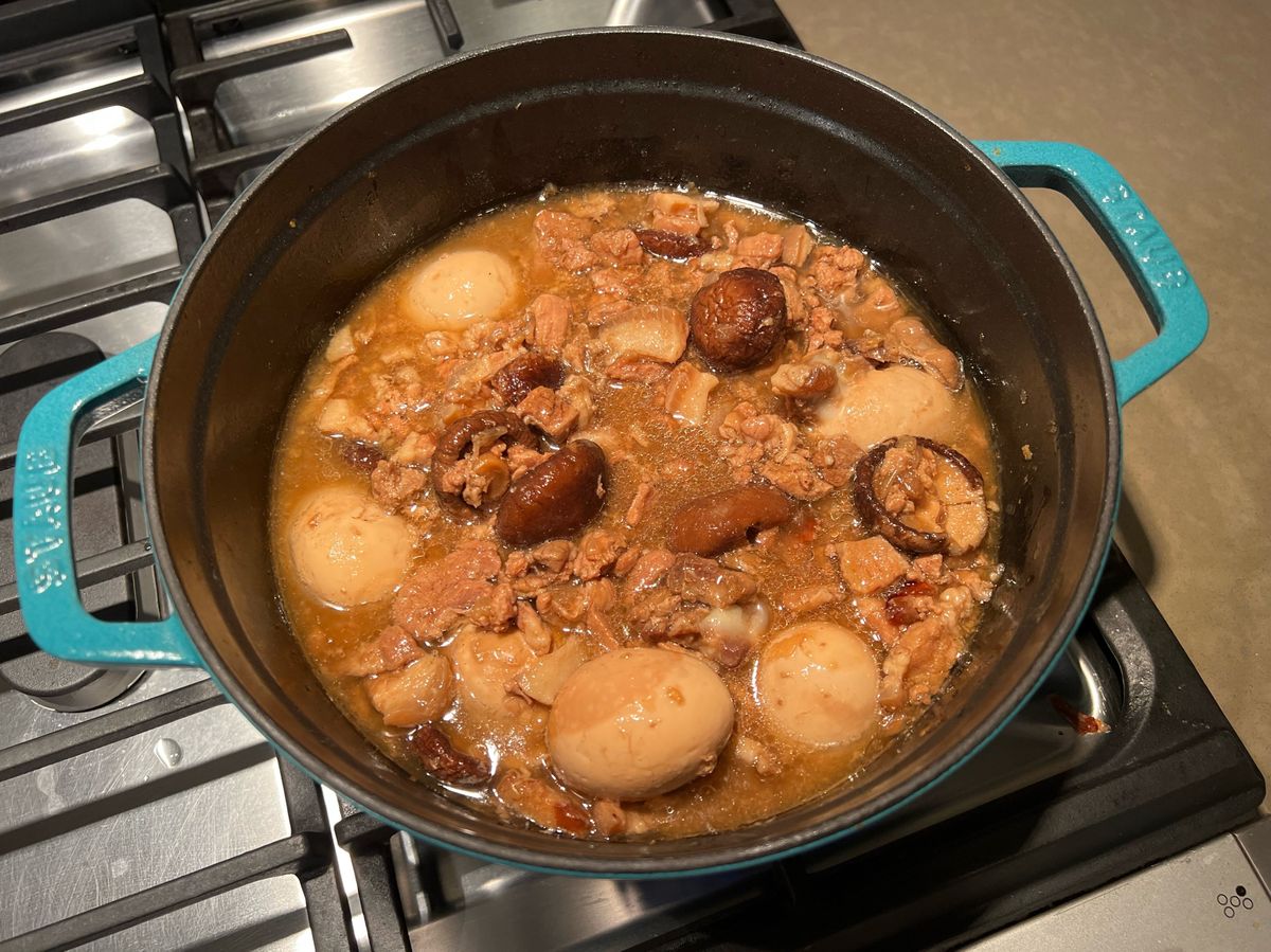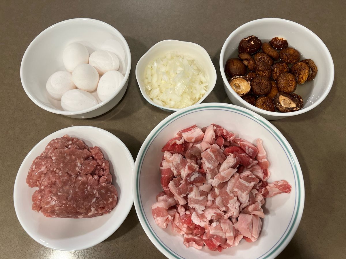 Angela 66 食譜 428 粉絲 追蹤 香菇滷肉飯 (Staub鑄鐵鍋) 24 說讚 讚收藏分享分享FacebookLINE複製連結列印 食材 五花肉 1磅 豬絞肉 1磅 蛋 6顆 洋蔥 1顆 香菇 1碗 調味料 蒜泥 1大匙 紅蔥酥 2大匙 醬油 140cc 黑糖 1大匙半 五香粉 1小匙 白胡椒粉 1小匙 米酒 1杯 步驟 準備好食材。五花肉切條。洋蔥切丁。 同時間可以燒水煮蛋10分鐘。 蛋好了之後用冷水沖洗。剝殼備用。 將五花肉下鍋炒半熟。 加入絞肉及洋蔥,炒熟。 加入一大匙半的黑糖,2大匙紅蔥酥,1大匙蒜泥。均勻的攪拌上色。 加入140cc醬油,1小匙五香粉,1小匙白胡椒粉,1杯米酒。 (紅蔥酥可以在加多一點味道會更香喔!) 加入清水,蓋過材料。 加入水煮蛋及香菇。 蓋上鍋蓋,用中大火煮至滾沸。 轉小火慢燉3個小時。這樣肉才會入口即化喔。 完成。 7,580 瀏覽 2021/12/18 發表