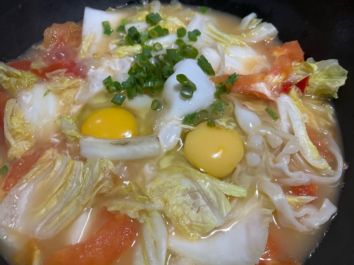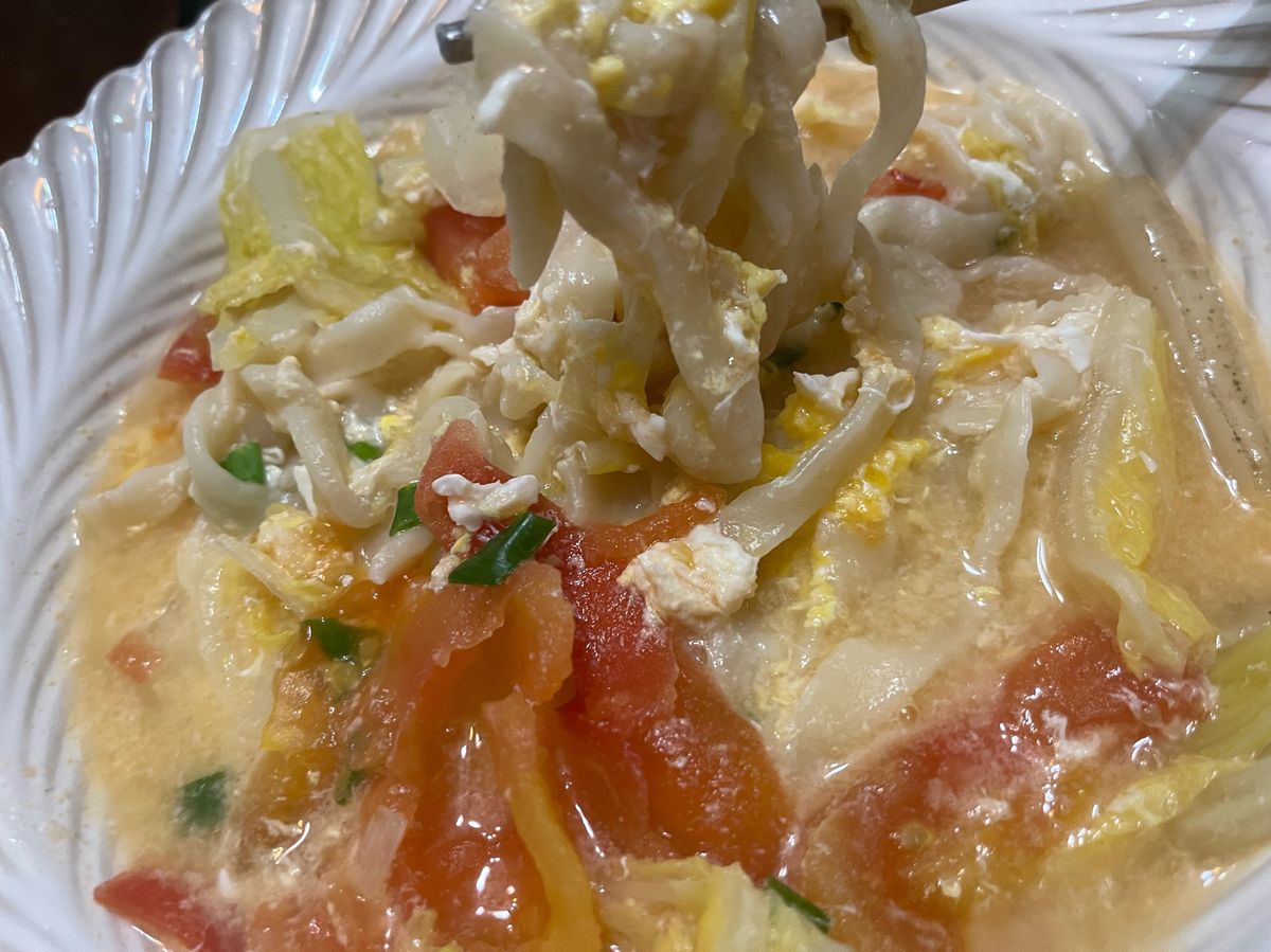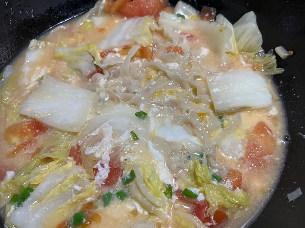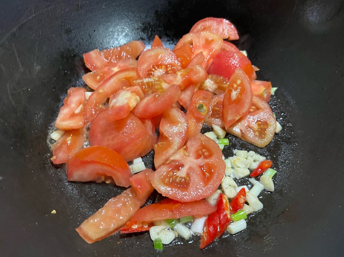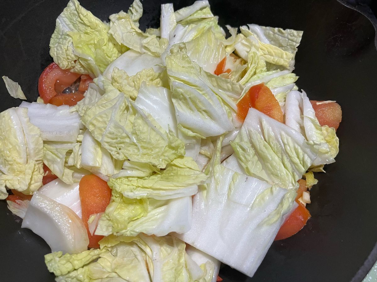 懶人下廚Milkie 127 食譜 758 粉絲 追蹤 番茄蛋花湯《番茄雞蛋麵》 描述 簡單營養而且超好吃~ 可以不加麵更減脂健康啦~ 8 說讚 讚收藏分享分享FacebookLINE複製連結列印 份量 2 人份 時間 15 分鐘 食材 番茄 3顆 雞蛋 2顆 白菜 4片 手工麵 1球 蒜頭 2瓣 蔥 1把 辣椒 1根 雞高湯 1杯 步驟 番茄切塊 蔥白切斷 蔥綠切圈 蒜頭切碎 (不喜歡吃皮可以切十字放滾水剝皮) 麵條加鹽巴煮至水滾撈起備用 蔥白蒜頭辣椒熱鍋加油爆香 加入蕃茄拌炒 加入切塊白菜拌炒 炒軟後加入過濾水跟雞高湯燉煮 (我的冰箱隨時都有仁廚的雞高湯) 蔬菜煮軟之後把麵放回來再滾三分鐘 加點鹽巴跟白胡椒調味 起鍋前打入雞蛋灑上蔥花 我喜歡散散的半熟蛋花 太好吃了😋 8,319 瀏覽 2022/12/01 發表