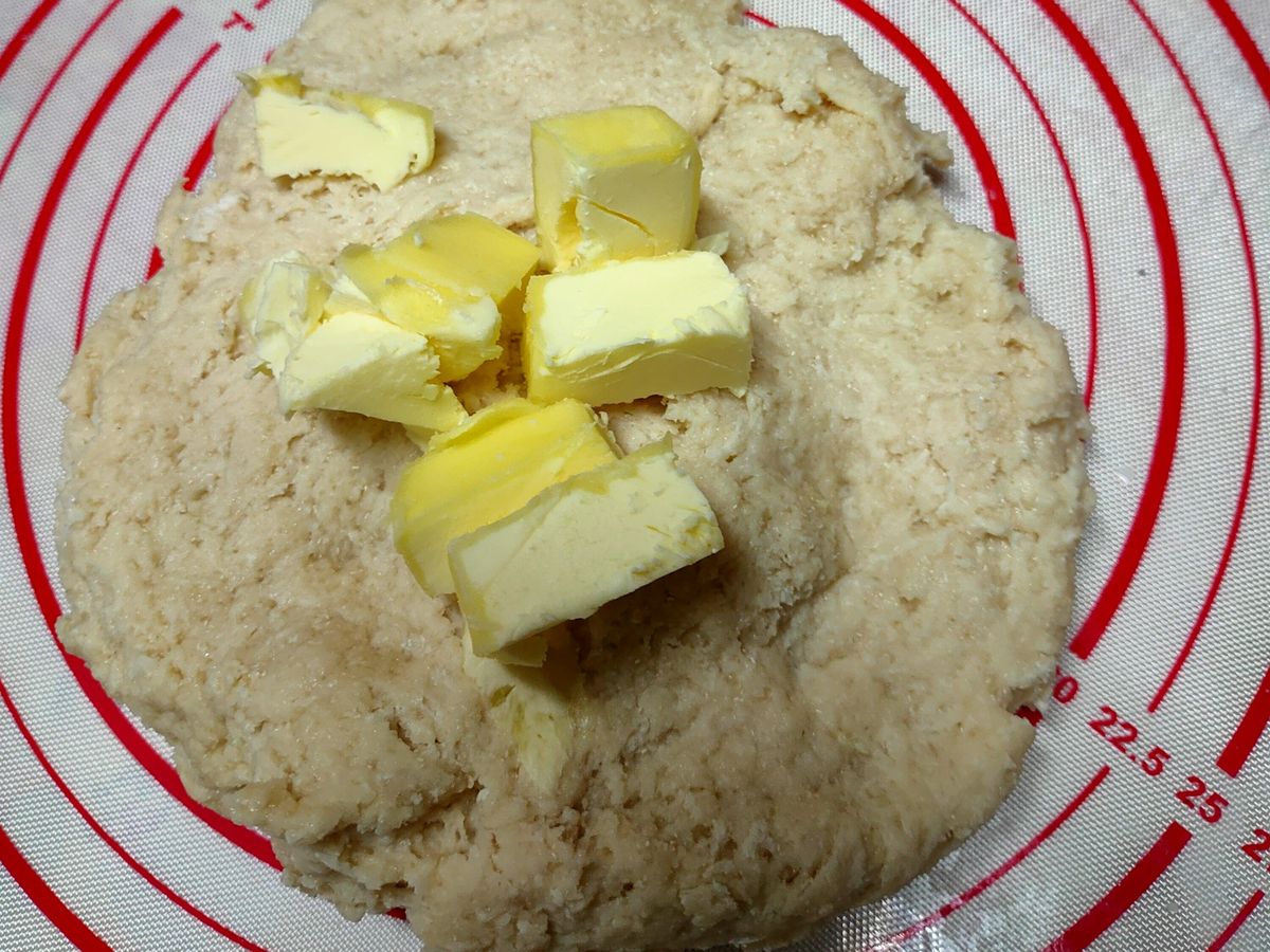 婕華 30 食譜 62 粉絲 追蹤 葡萄乾木材麵包(無蛋版) 10 說讚 1 一起做 1 留言 讚收藏分享分享FacebookLINE複製連結列印 份量 5 人份 時間 120 分鐘 熱量 VIP 限定功能VIP 獨享 食材 高筋麵粉 200克 低筋麵粉 100克 白糖 70克 牛奶或水 160克 奶粉 20克 酵母粉 5克 無鹽奶油 35克 鹽 1克 葡萄乾 50克 抹茶粉(可省略) 5克 步驟 除了奶油,葡萄乾,,其他粉料拌均勻 這時麵糰有點粗糙,,再把奶油塊慢慢揉進麵糰 加了奶油,麵糰變軟,質地變細 然後室溫發酵1小時 可以取部分麵糰,調色(非必要) 麵糰桿成長方形,再折三折(反覆3-5次) 兩色麵皮桿平再貼合,均勻鋪上葡萄乾 捲起來(要注意接合處),再密封發酵30分鐘 烤箱預熱180度,35分鐘 中途烤盤記得調頭 🥰🥰🥰最後 放涼切片即可食用 5,935 瀏覽 2023/03/31 發表