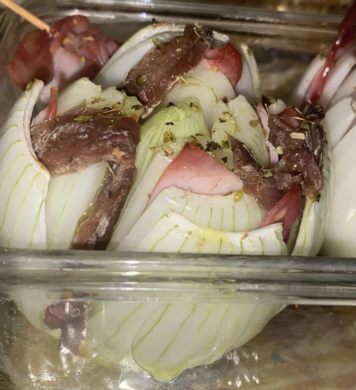 ccshcook 220 食譜 207 粉絲 追蹤 烤洋蔥培根塔 描述 R102 03陳宥豐 07顏宏琪 以法國菜改良而來的台灣味,與當地食材做結合,把一些材料換成在台灣相對好取得的材料,卻又保持原有的美味與美感,有著洋蔥的甜,鯷魚的鮮,配飯美味,單吃也令人驚艷 3 說讚 讚收藏分享分享FacebookLINE複製連結列印 份量 2 人份 時間 90 分鐘 食材 洋蔥 2 培根or火腿 2~4片 鹽漬鯷魚 一個 橄欖油 些許 義大利香草 少許 步驟 STEP1:將洗淨的洋蔥切十字刀 不可切斷 STEP2:將清洗過的鯷魚和培根塞入洋蔥的夾層內 STEP3:淋上橄欖油及義大利香料放進烤箱以150度烤1小時15分鐘,每隔20分鐘拿出來淋一圈橄欖油再放回去烤 3,358 瀏覽 2023/06/05 發表