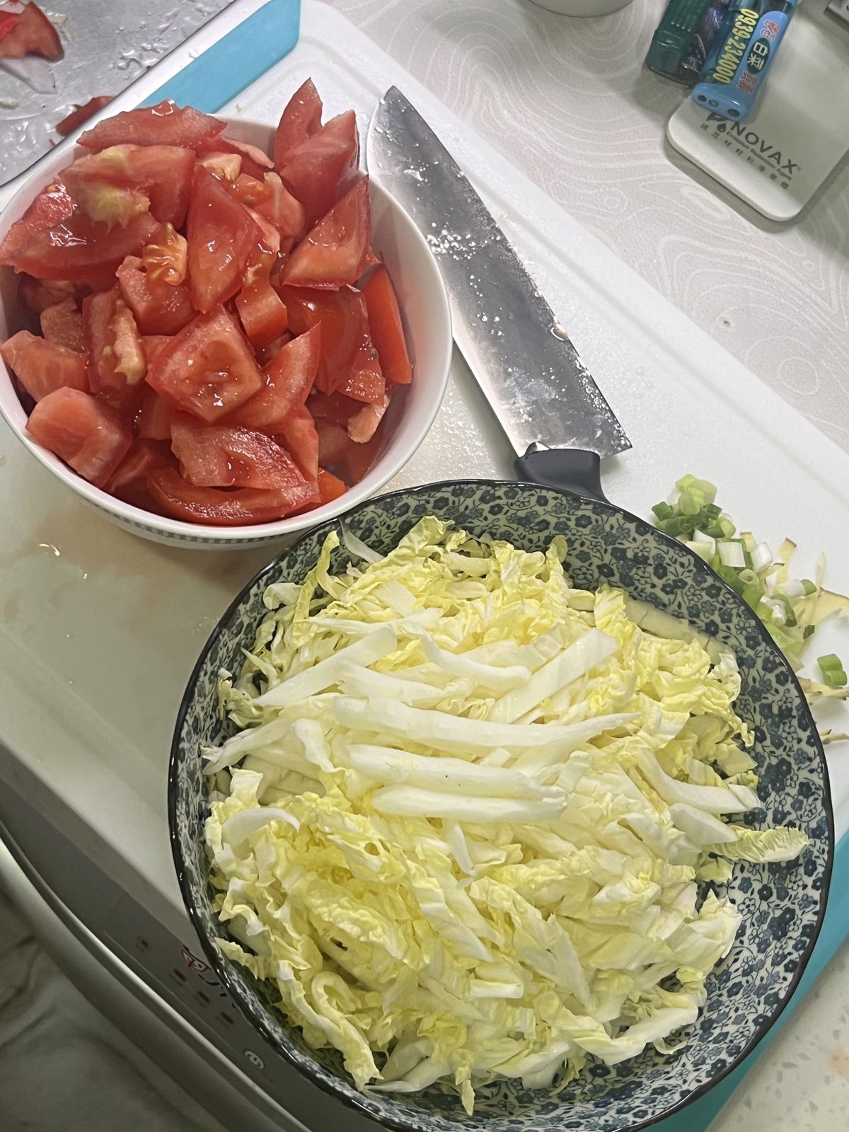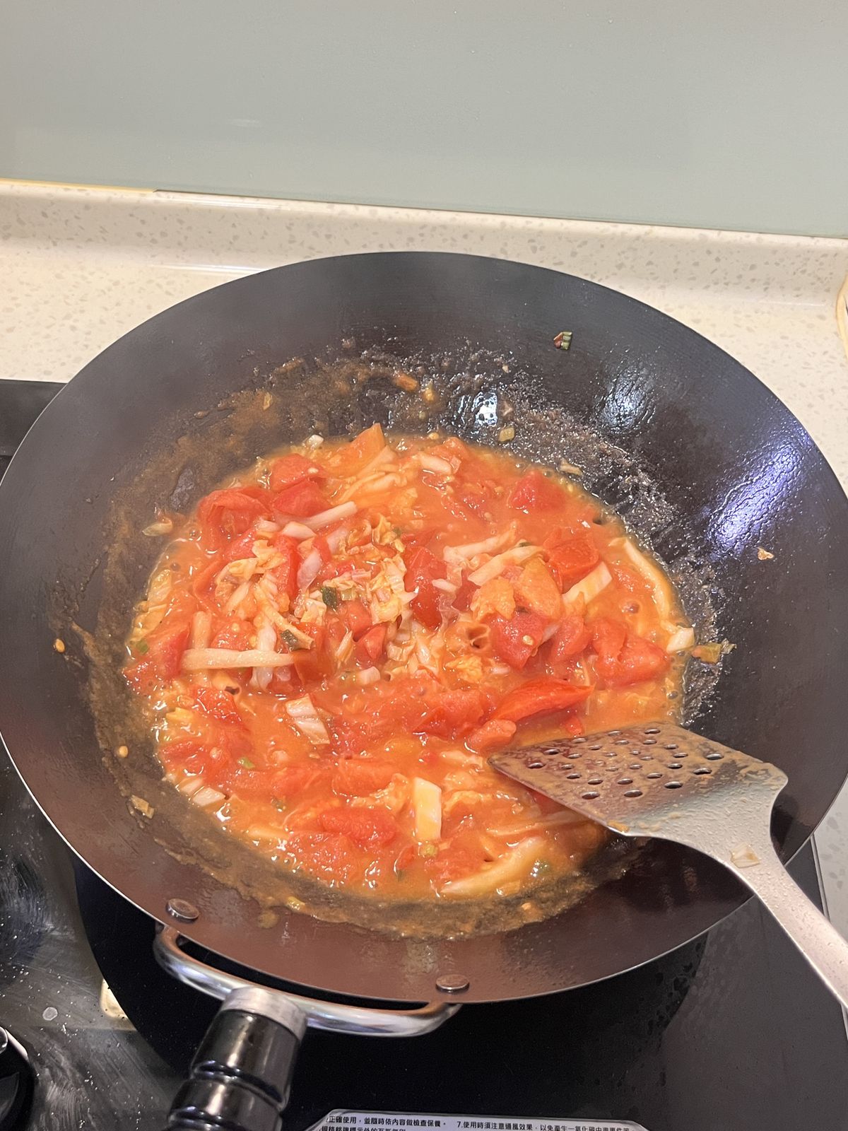 林佳暘 1 食譜 4 粉絲 追蹤 番茄麵 描述 番茄麵食譜簡單,用番茄、麵條、蔥薑等基本食材烹製。適合全家共享 #蔬菜麵 #家常菜 #簡單快速 #營養豐富 #中式料理 25 說讚 讚收藏分享分享FacebookLINE複製連結列印 份量 2 人份 時間 20 分鐘 食材 番茄 4顆 大白菜 1/4顆 麵條 2把 蛋 2顆 蔥薑 少許 食鹽 適量 香油 適量 香菜 1把 水 1公升 步驟 番茄切小塊,白菜切細絲 熱鍋涼油,油溫升至70度 蔥薑爆香 先丟入番茄翻炒 轉小火,煸炒至番茄醬狀 再丟入切好的白菜絲,繼續煸炒,炒至白菜斷生軟爛狀 後加入1公升的水(或高湯),大火煮開後加入兩把細麵,煮至細麵8分熟,加入適量食鹽 將雞蛋打入鍋內,等雞蛋煮至定型後,再稍作攪拌 最後加入適量香油、切好的香菜末 盛出即可享用美食 6,117 瀏覽 2024/05/19 發表