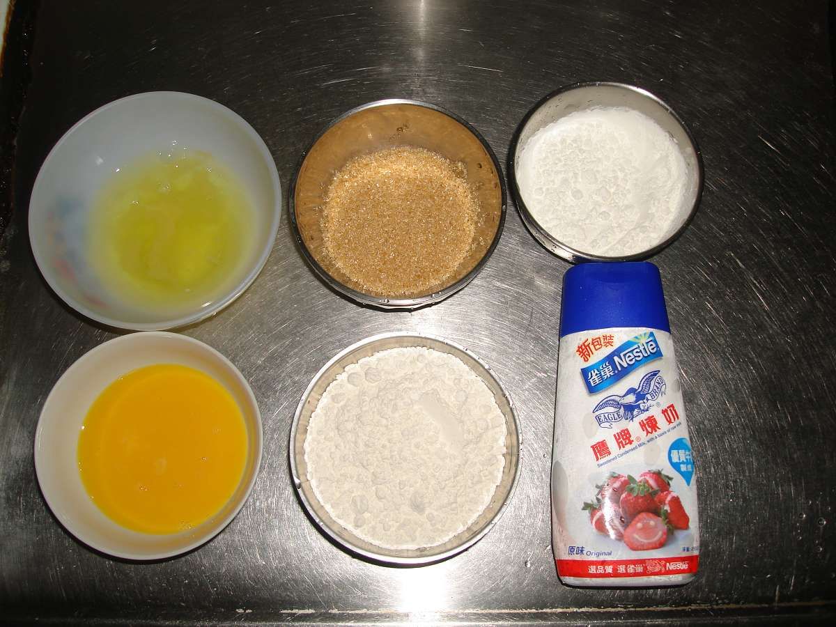 烤箱預熱後,倒入麵糊,入烤箱烤12分鐘(先以170度烤5分鐘,再以150度烤7分鐘),最後待蛋糕體取出放涼後,包入奶凍內餡即可...